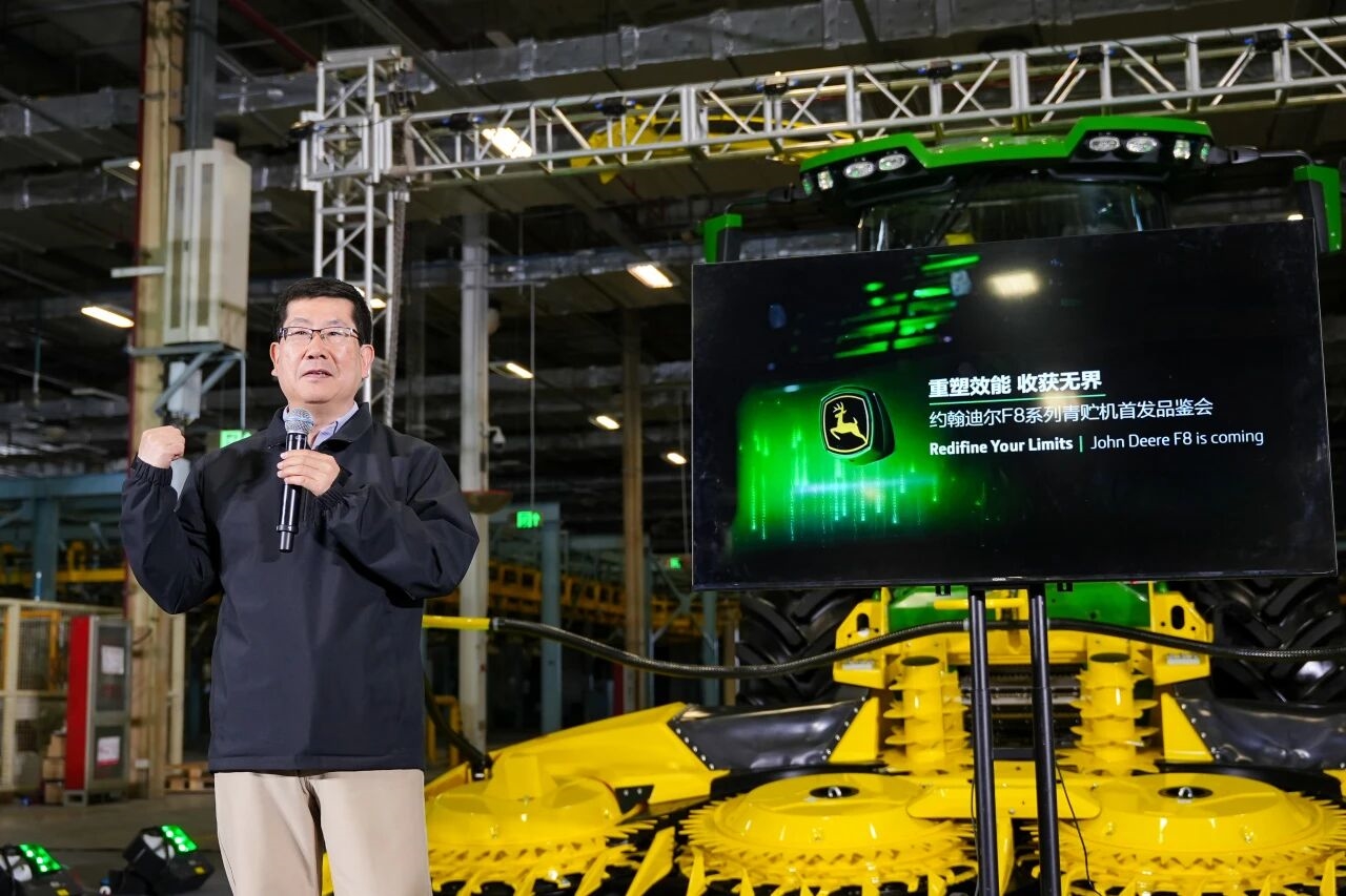 导读:现场公布其青贮玉米收获田间测试最高效率 247 吨 / 小时、最低油耗 0.44 升 / 吨的核心优势,并强调约翰迪尔将为F8系列提供全生命周期解决方案。