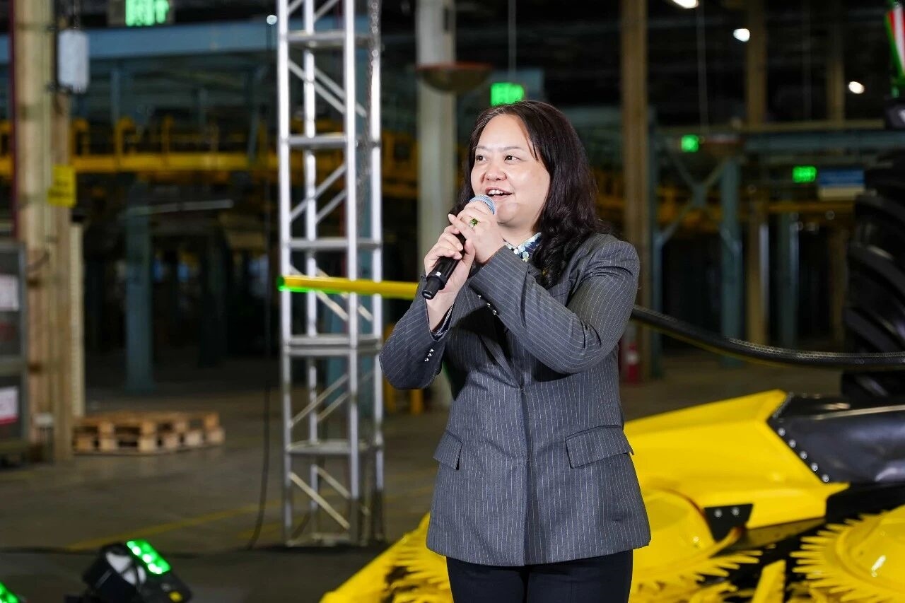 约翰迪尔亚太区销售市场部总监边雅君女士作开场致辞,介绍全新F8青贮收获机以用户作业中的高效可靠、跨区效率与青贮质量等核心痛点为创新原点,提出 “重塑效能,收获无界” 愿景,现场公布其青贮玉米收获田间测试最高效率 247 吨 / 小时、最低油耗 0.44 升 / 吨的核心优势,并强调约翰迪尔将为F8系列提供全生命周期解决方案,坚守与伙伴长期共赢的承诺,助力用户把握收割窗口期,携手开启青贮收获新篇章。