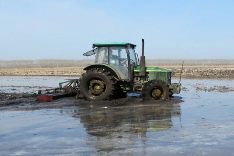 二道河农场通过严格技术标准,应用卫星平地等技术措施,提高作业效率,以早动争主动、以指导促标准,有序开展泡田整地工作。并按照泡田与整地同步、泡田整地与大棚育苗同步的方式,做到整地不脱节、速度不减、标准不降、错峰用电,有效加快泡田整地进度。