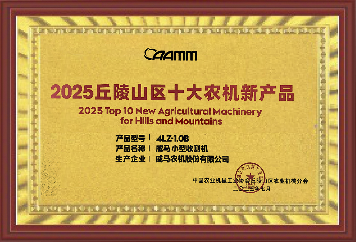 此次入选“2025丘陵山区农机新产品”,是对威马4LZ-1.0B小型收割机精准解决行业痛点、有效提升丘陵山区收获效率与体验的肯定。